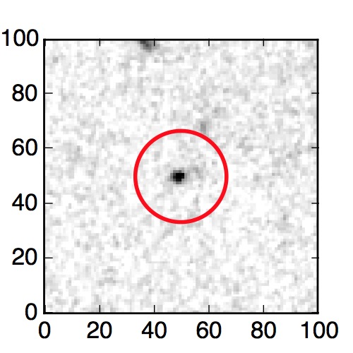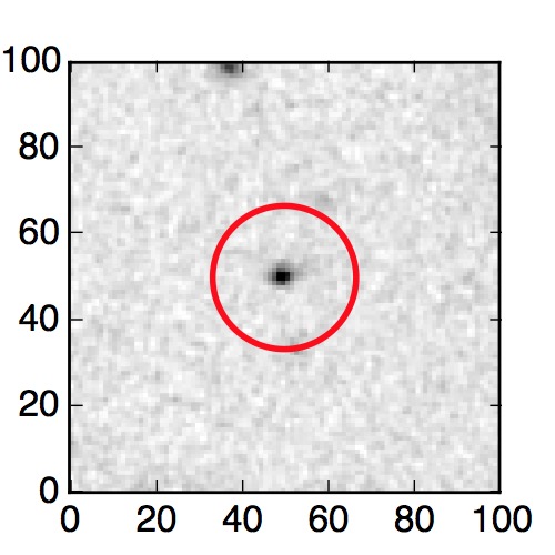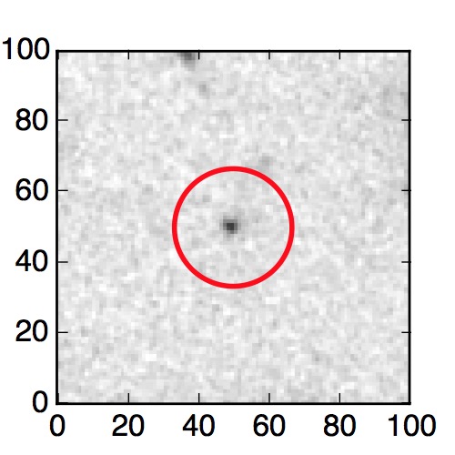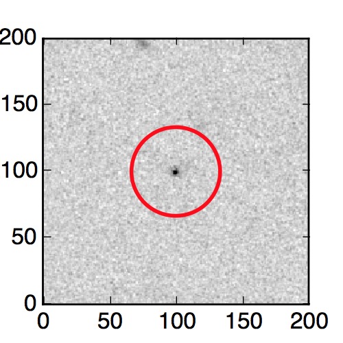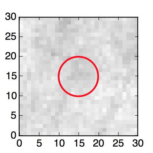 The red circle in the various panels is 1" in radius. The images are 6"x6".