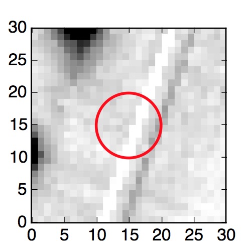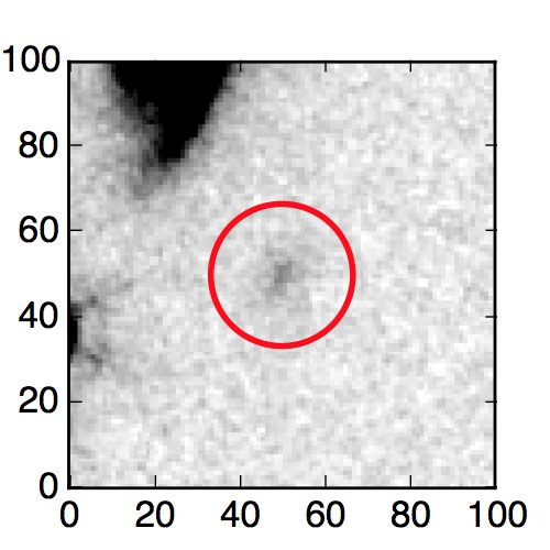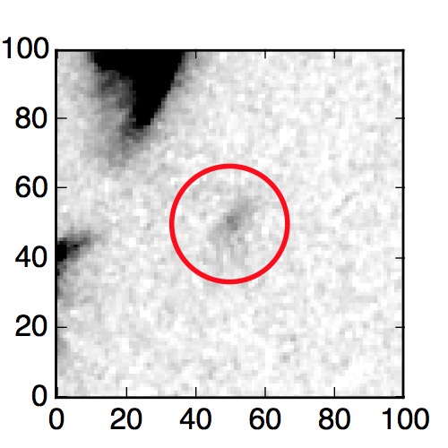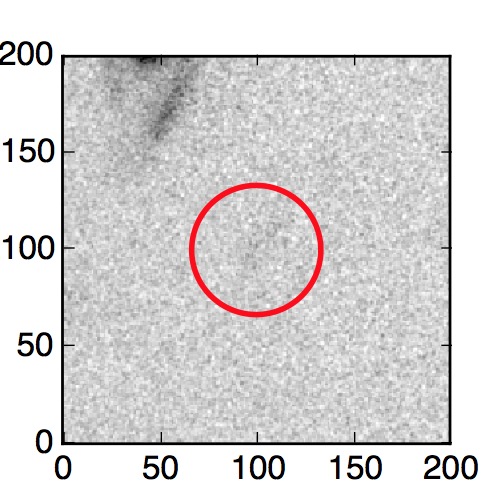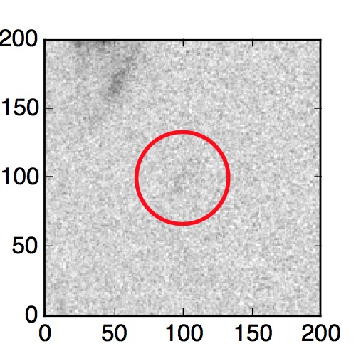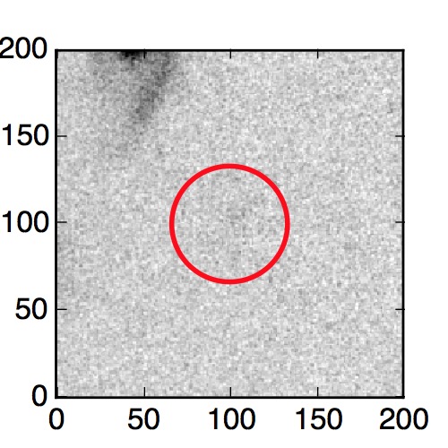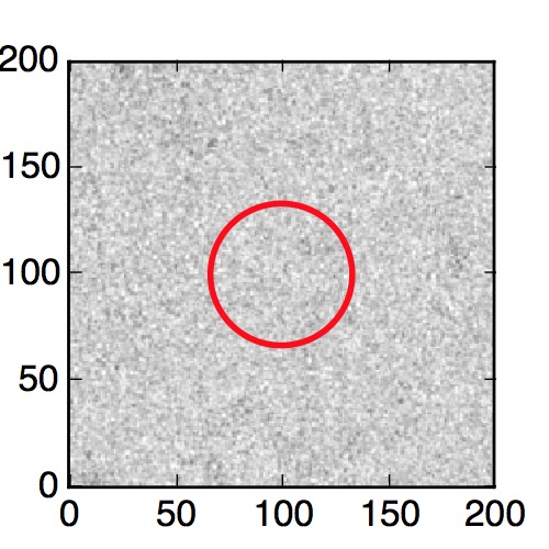 The red circle in the various panels is 1" in radius. The images are 6"x6".