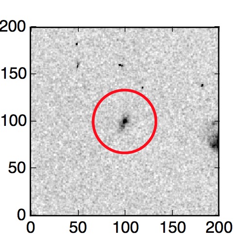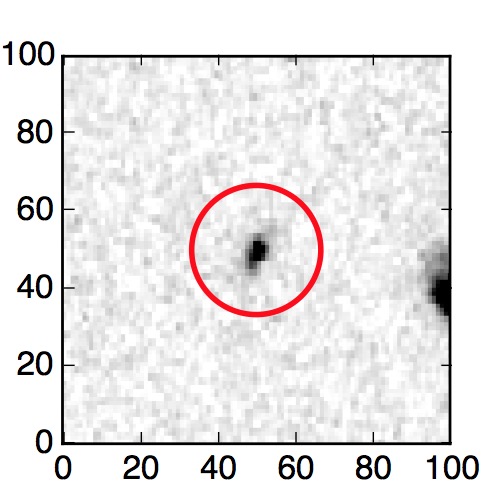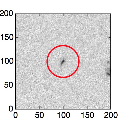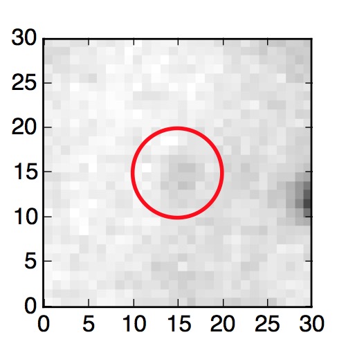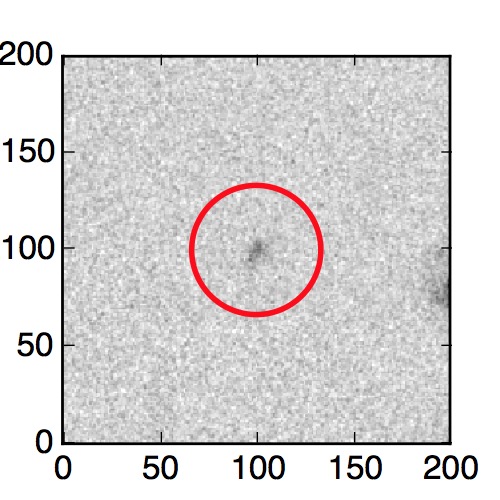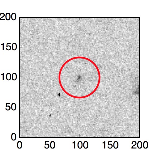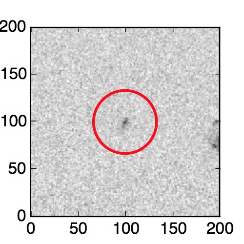 The red circle in the various panels is 1" in radius. The images are 6"x6".