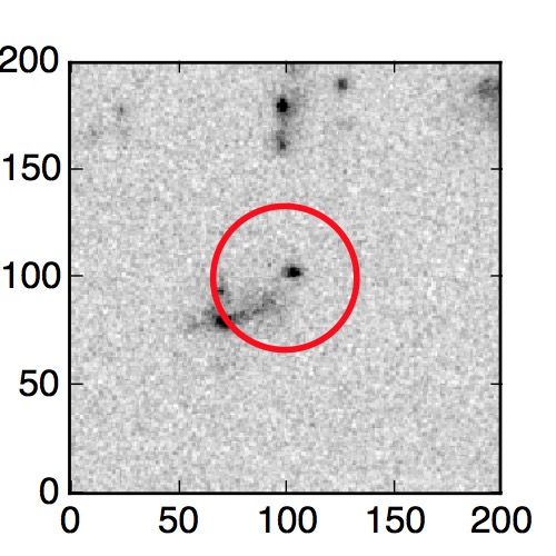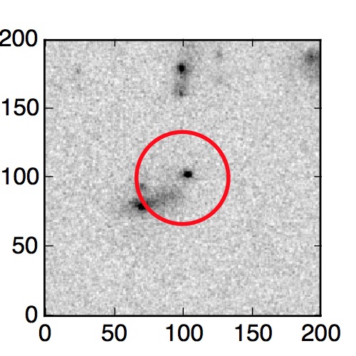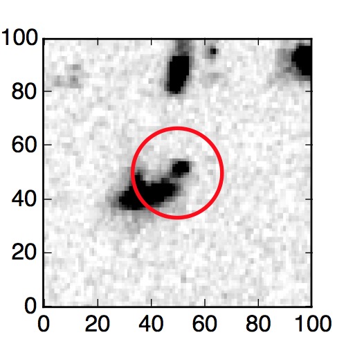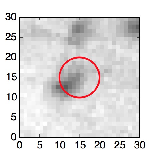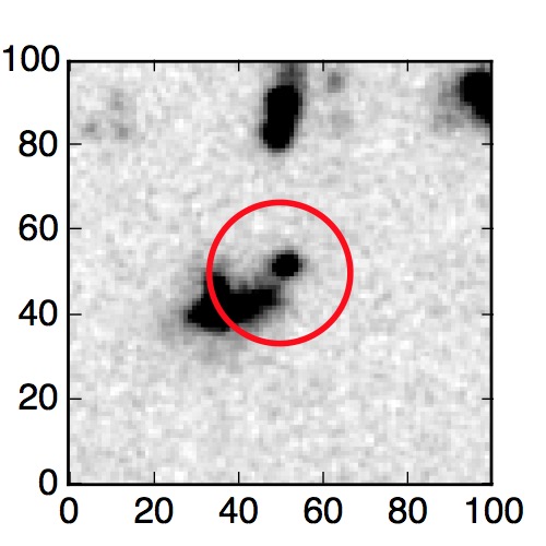 The red circle in the various panels is 1" in radius. The images are 6"x6".