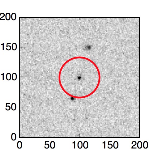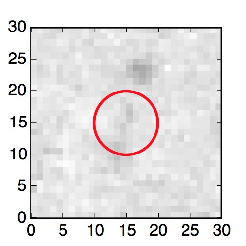 The red circle in the various panels is 1" in radius. The images are 6"x6".