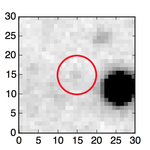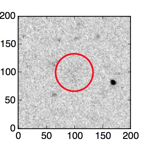 The red circle in the various panels is 1" in radius. The images are 6"x6".