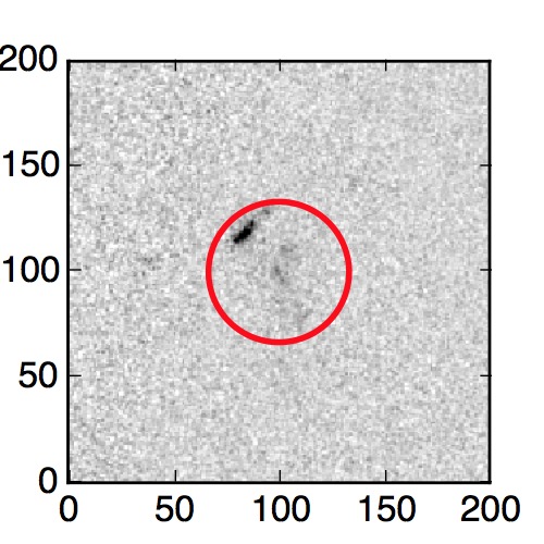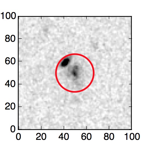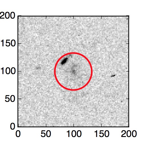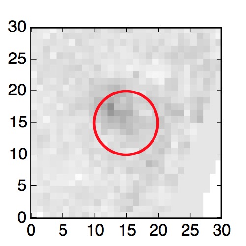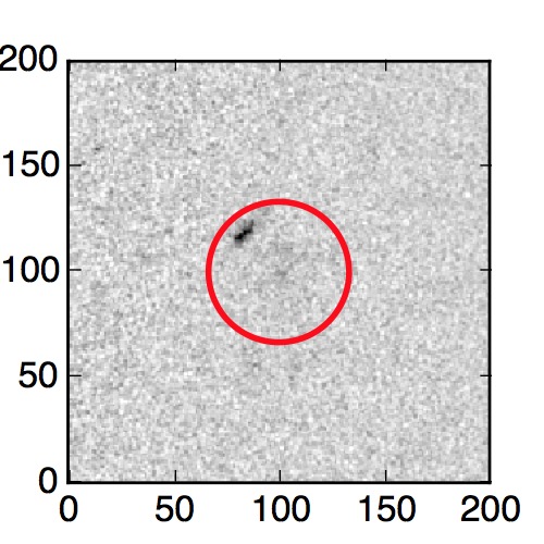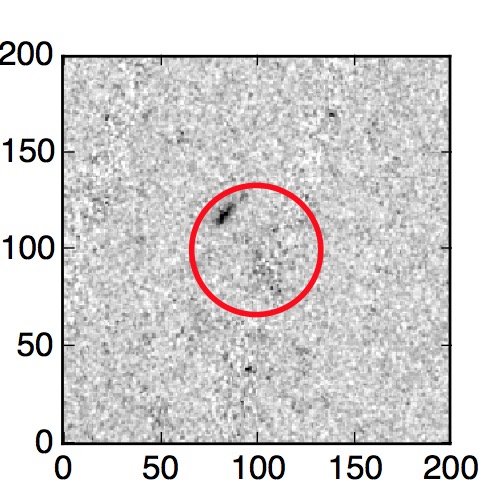 The red circle in the various panels is 1" in radius. The images are 6"x6".