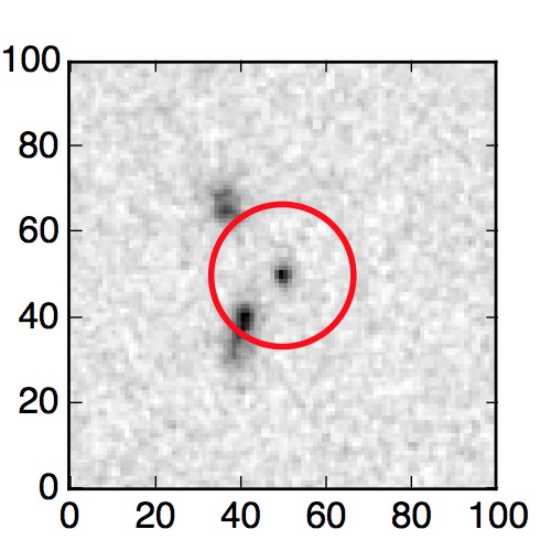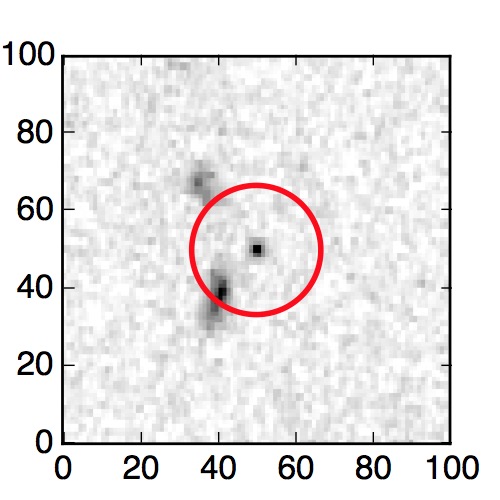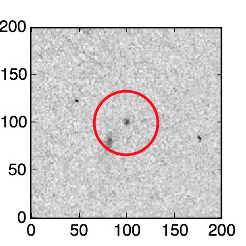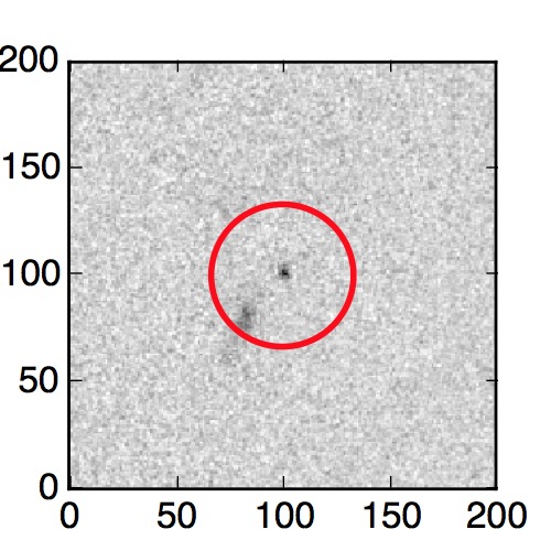 The red circle in the various panels is 1" in radius. The images are 6"x6".