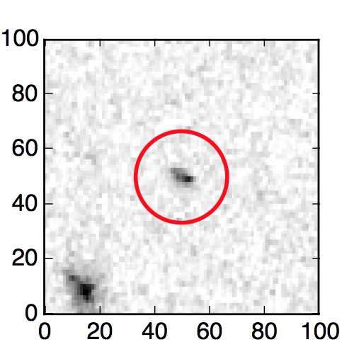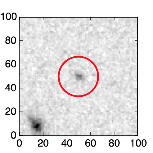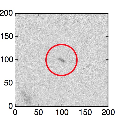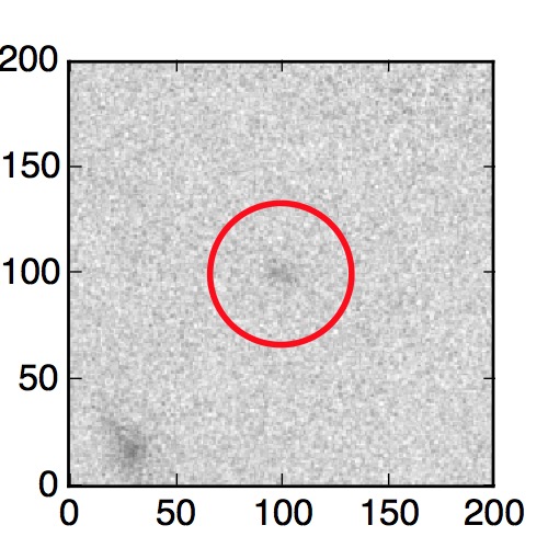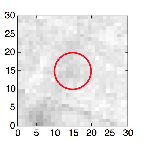 The red circle in the various panels is 1" in radius. The images are 6"x6".
