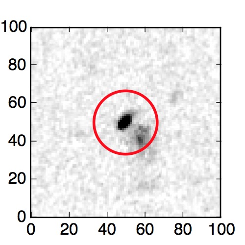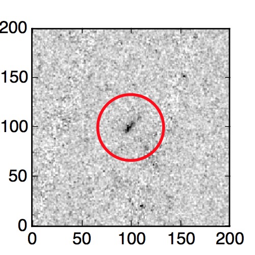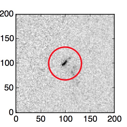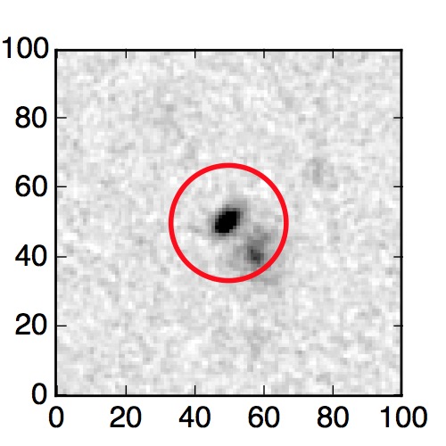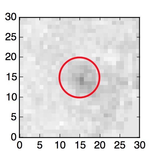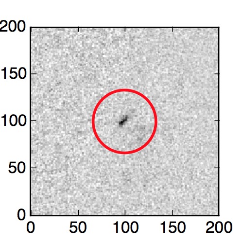 The red circle in the various panels is 1" in radius. The images are 6"x6".