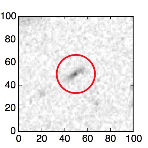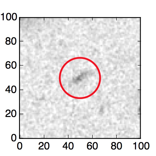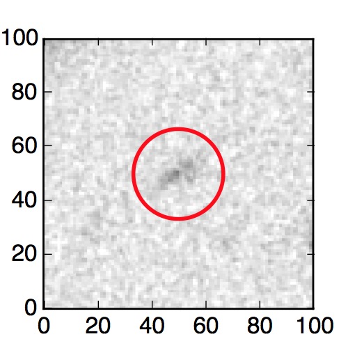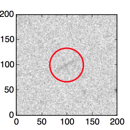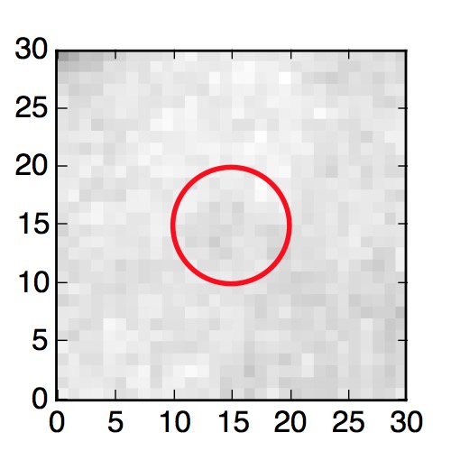The red circle in the various panels is 1" in radius. The images are 6"x6".