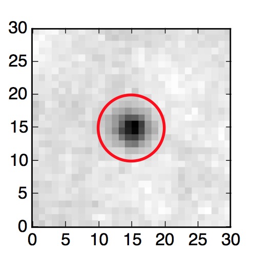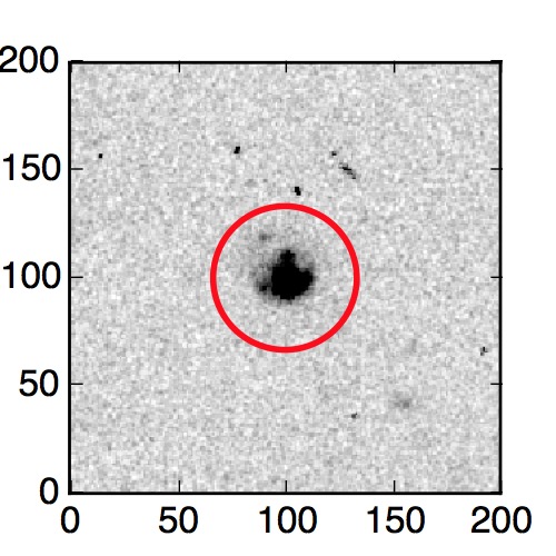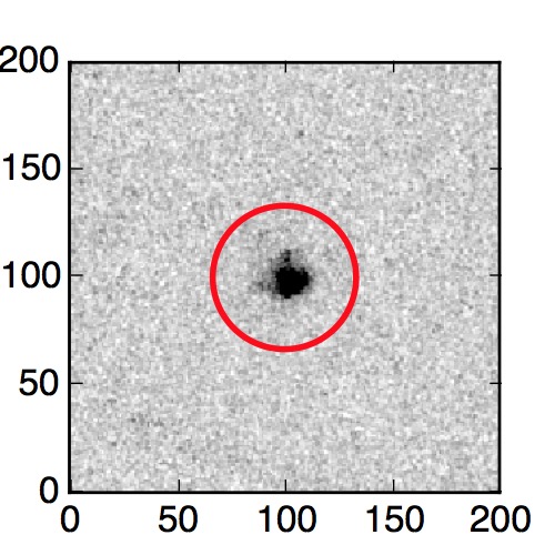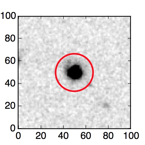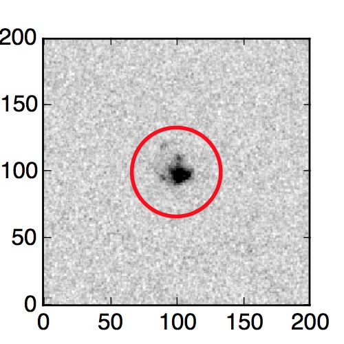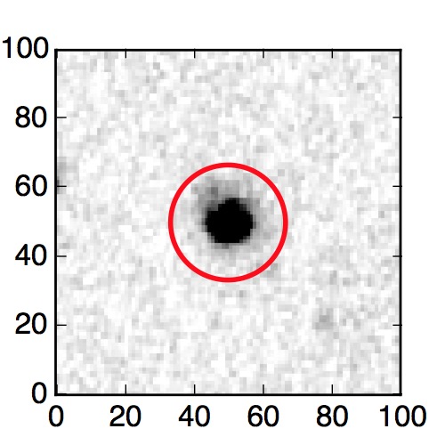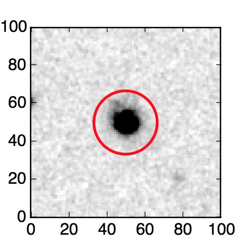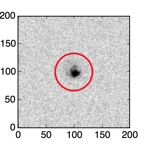 The red circle in the various panels is 1" in radius. The images are 6"x6".
