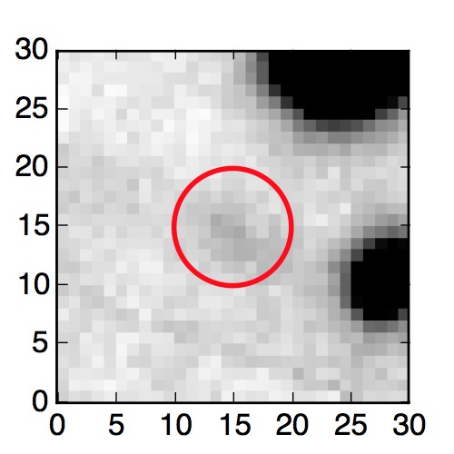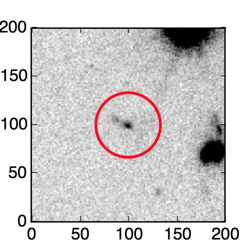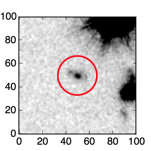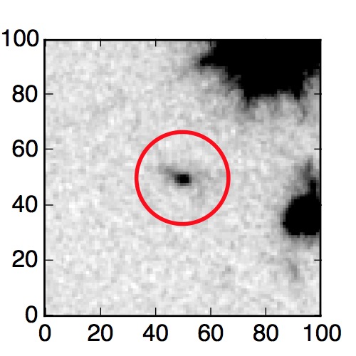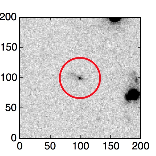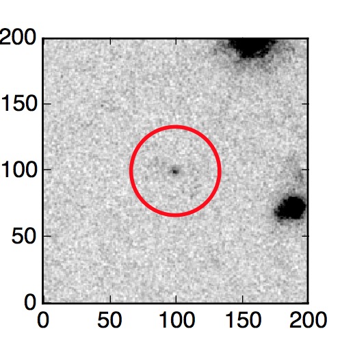 The red circle in the various panels is 1" in radius. The images are 6"x6".