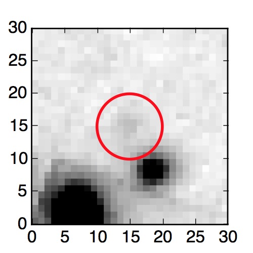 The red circle in the various panels is 1" in radius. The images are 6"x6".