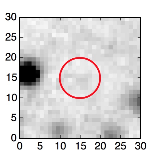 The red circle in the various panels is 1" in radius. The images are 6"x6".