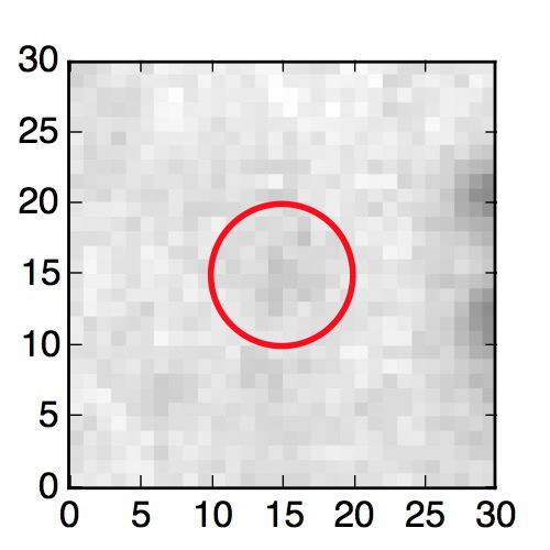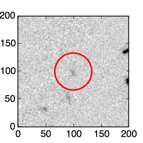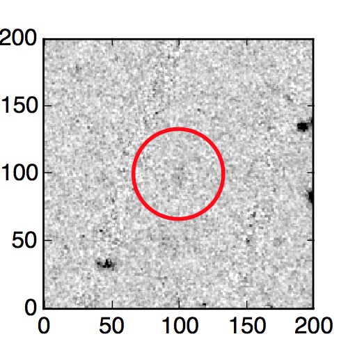 The red circle in the various panels is 1" in radius. The images are 6"x6".