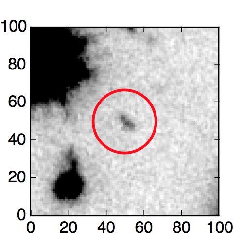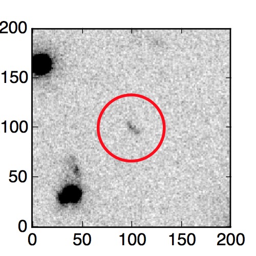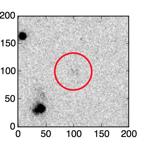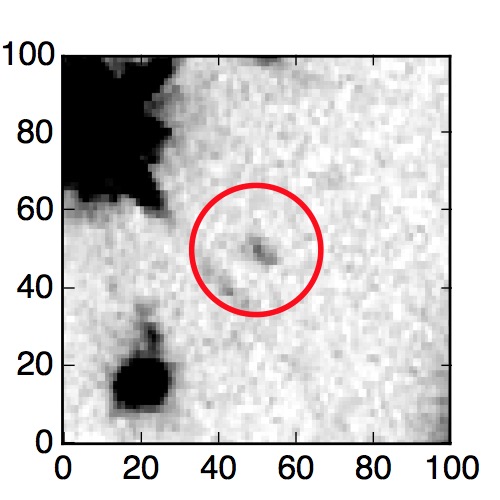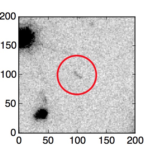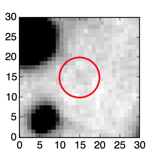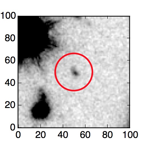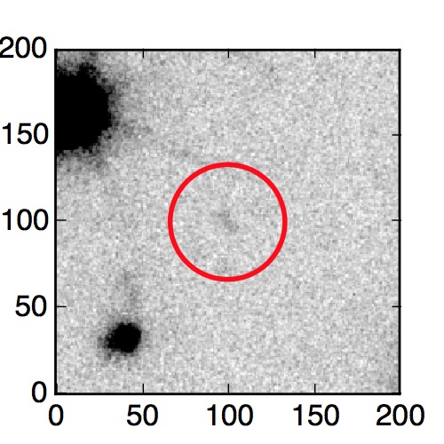 The red circle in the various panels is 1" in radius. The images are 6"x6".