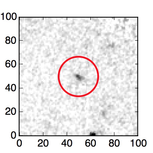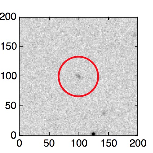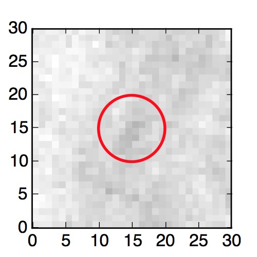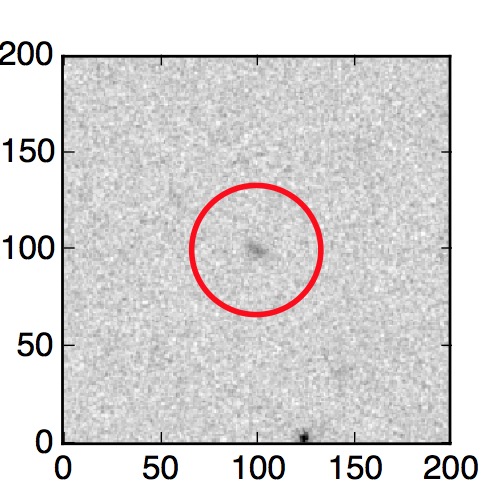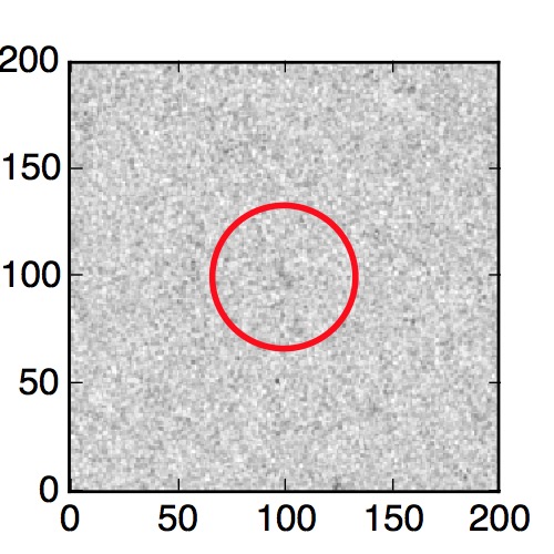 The red circle in the various panels is 1" in radius. The images are 6"x6".