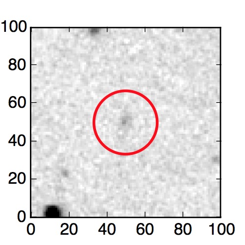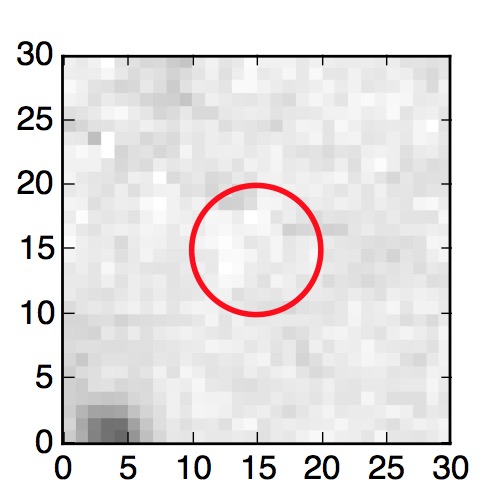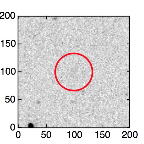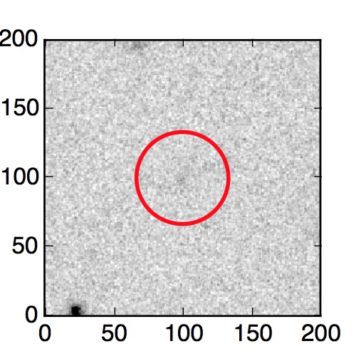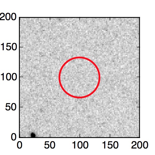 The red circle in the various panels is 1" in radius. The images are 6"x6".