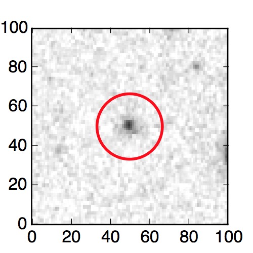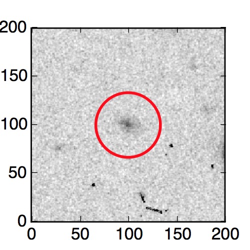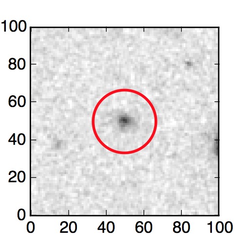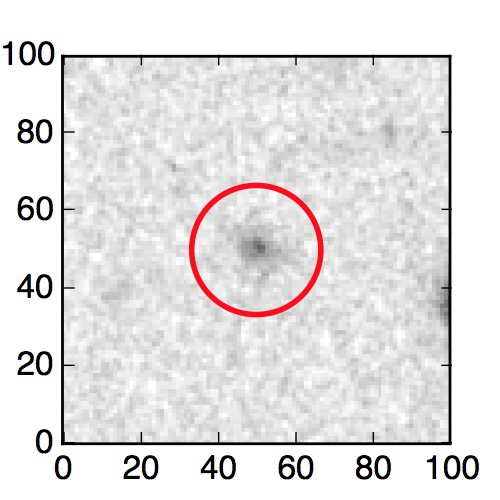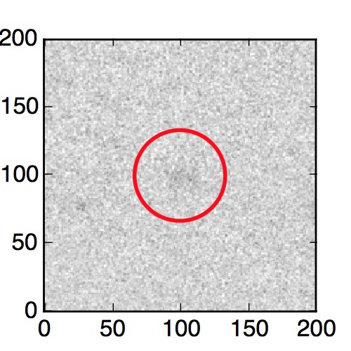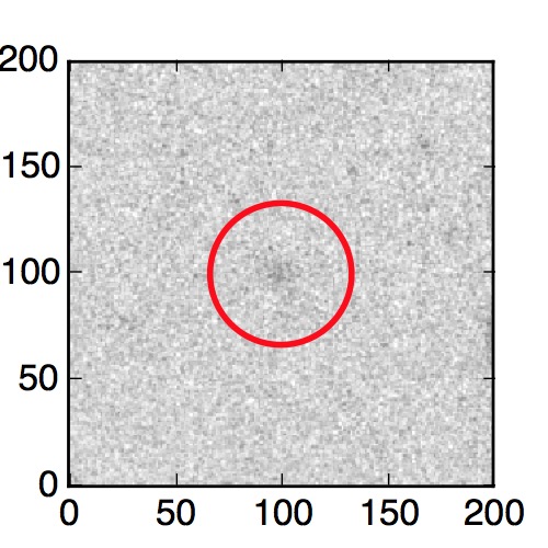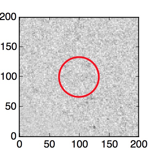 The red circle in the various panels is 1" in radius. The images are 6"x6".