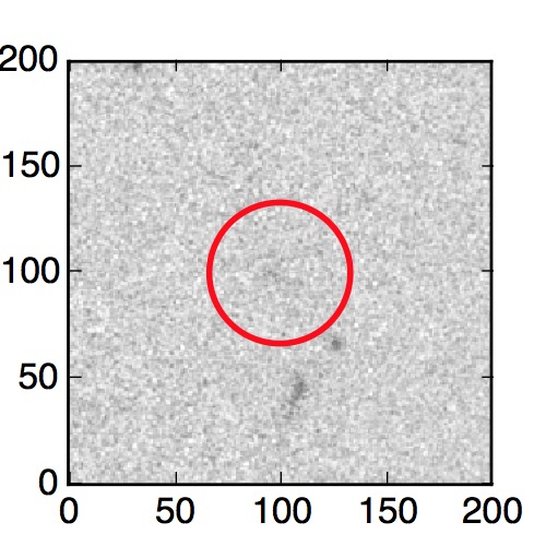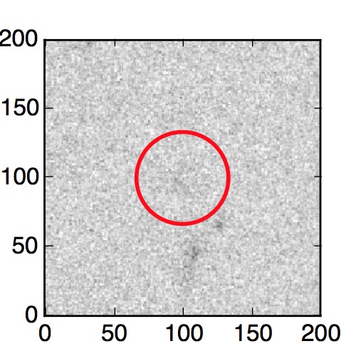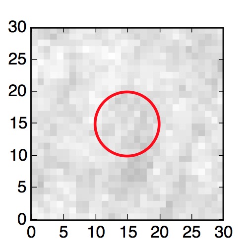 The red circle in the various panels is 1" in radius. The images are 6"x6".