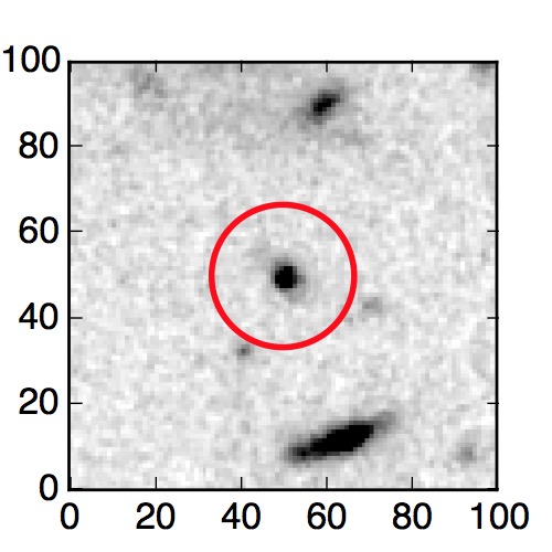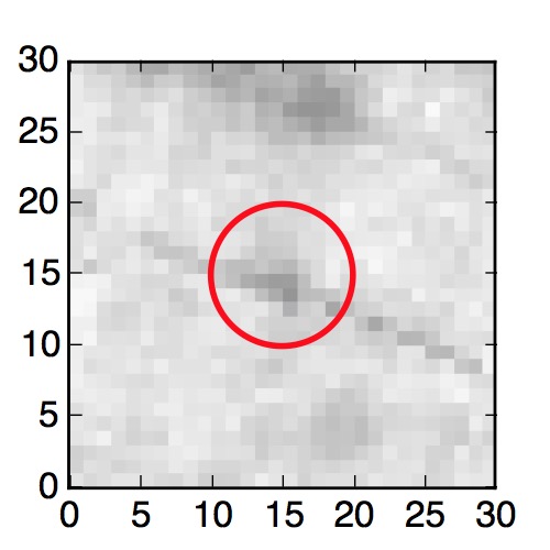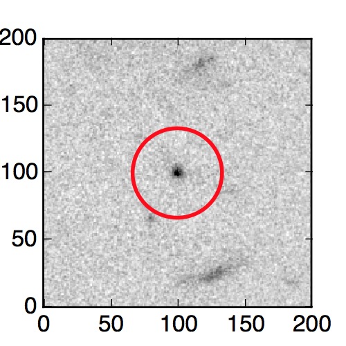 The red circle in the various panels is 1" in radius. The images are 6"x6".