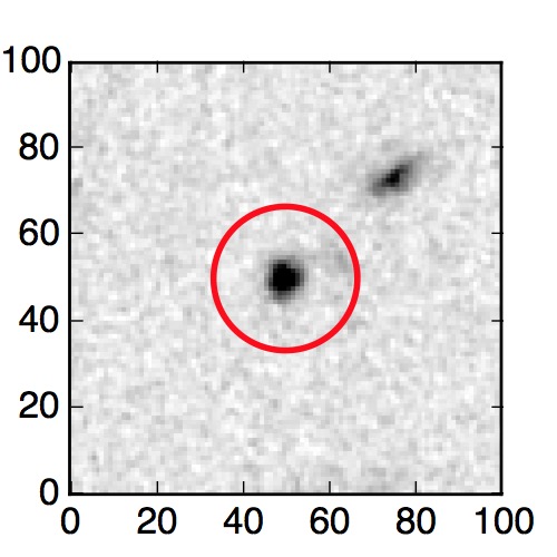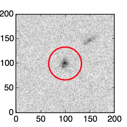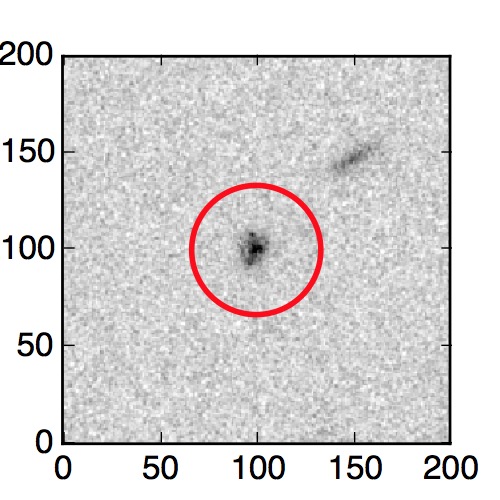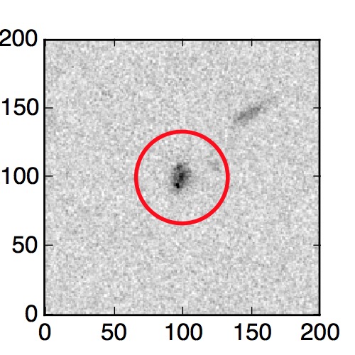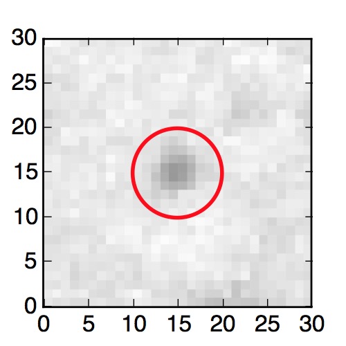 The red circle in the various panels is 1" in radius. The images are 6"x6".