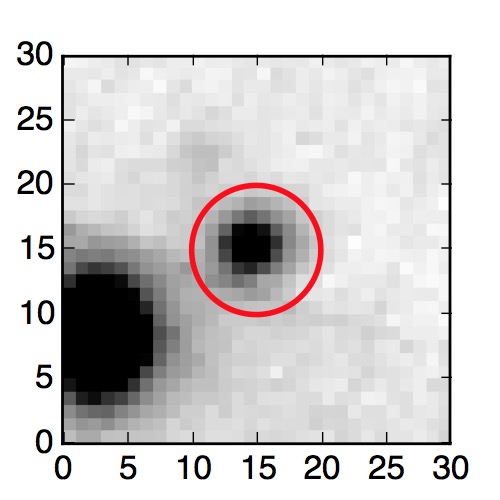The red circle in the various panels is 1" in radius. The images are 6"x6".