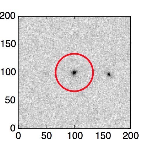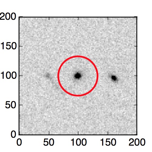 The red circle in the various panels is 1" in radius. The images are 6"x6".