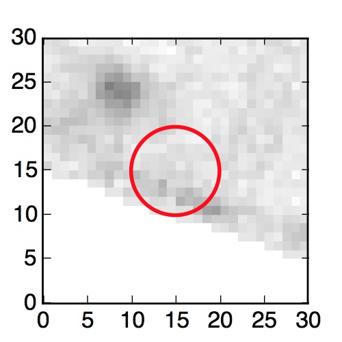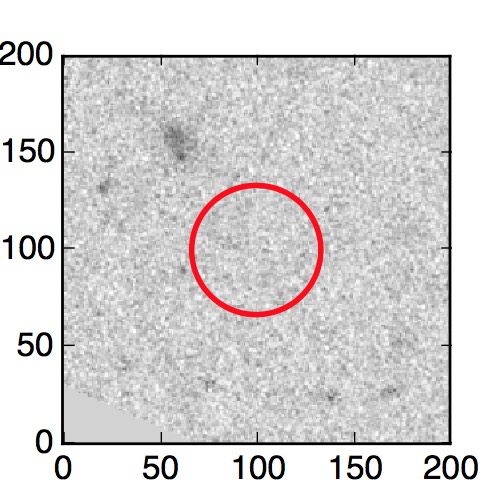 The red circle in the various panels is 1" in radius. The images are 6"x6".