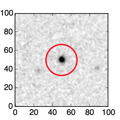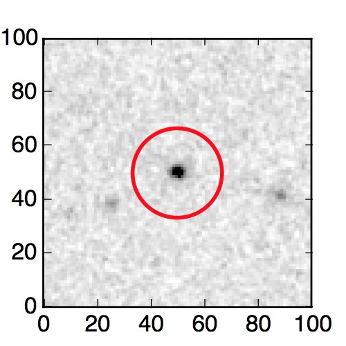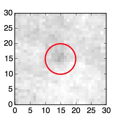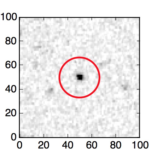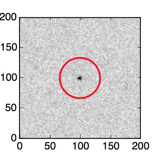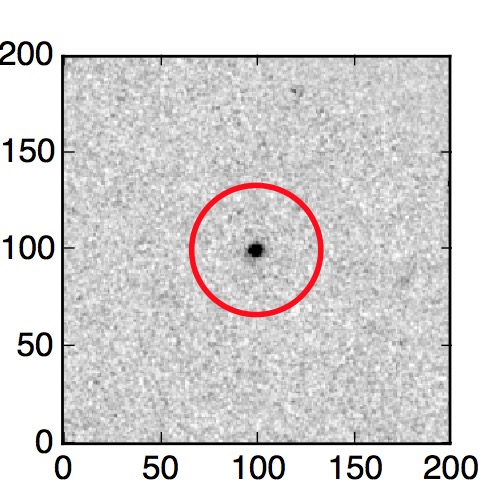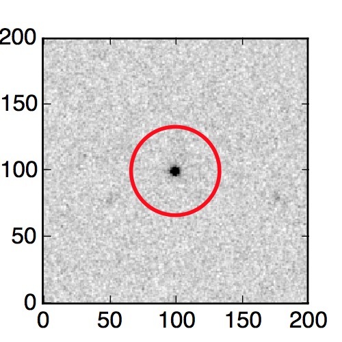 The red circle in the various panels is 1" in radius. The images are 6"x6".