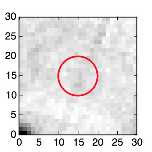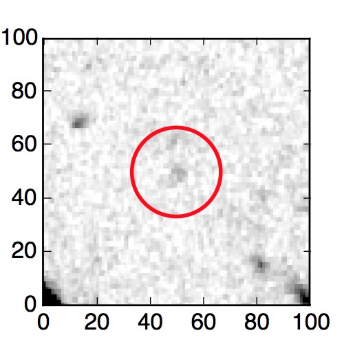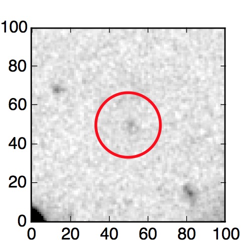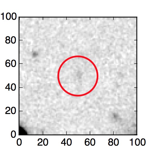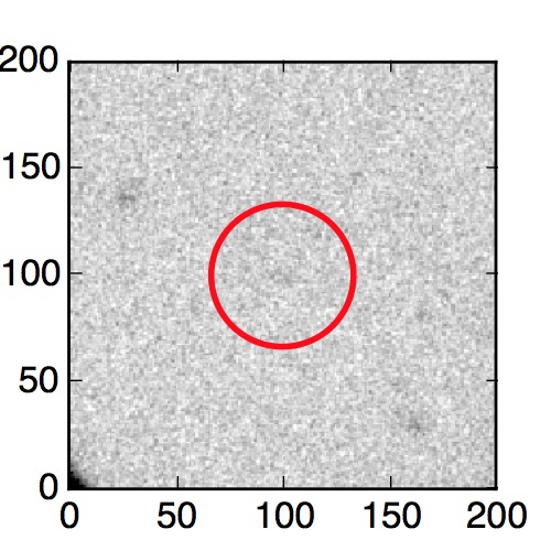 The red circle in the various panels is 1" in radius. The images are 6"x6".