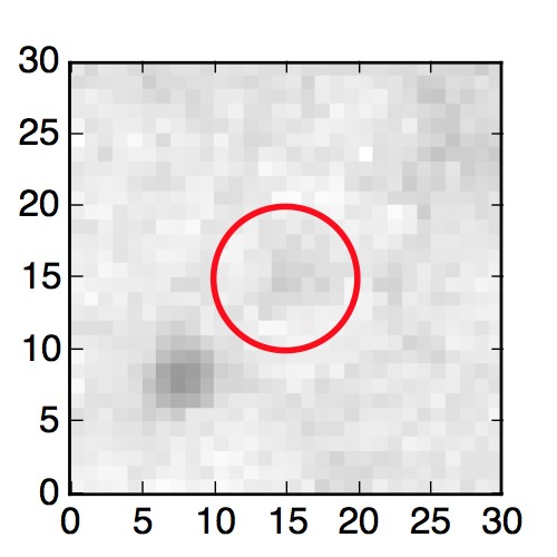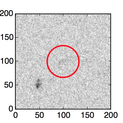 The red circle in the various panels is 1" in radius. The images are 6"x6".