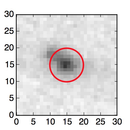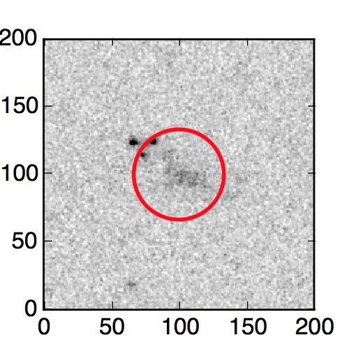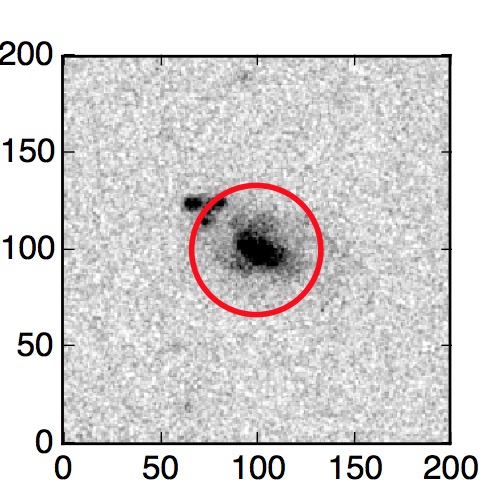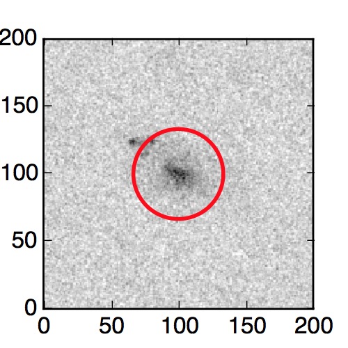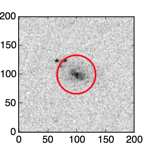 The red circle in the various panels is 1" in radius. The images are 6"x6".
