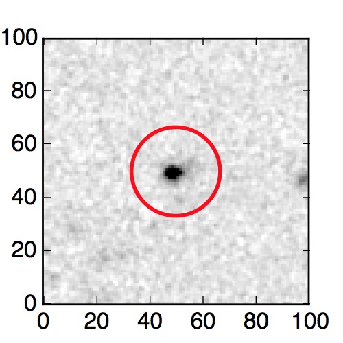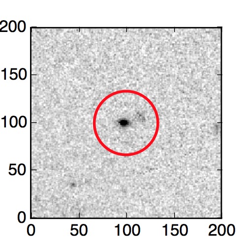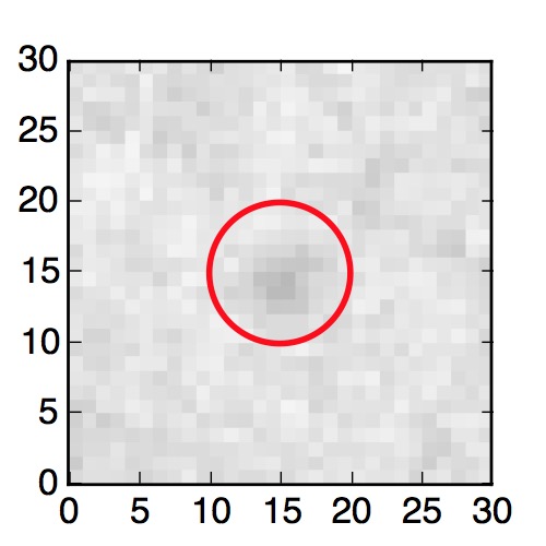 The red circle in the various panels is 1" in radius. The images are 6"x6".
