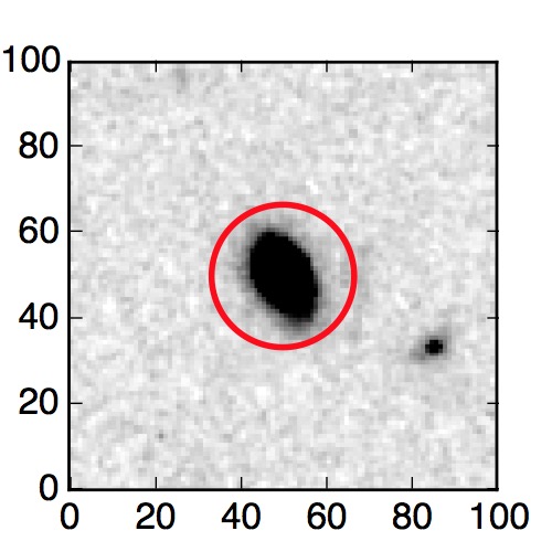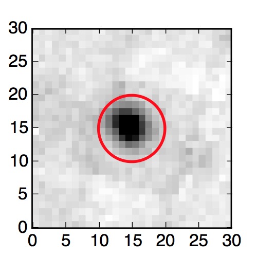 The red circle in the various panels is 1" in radius. The images are 6"x6".
