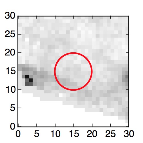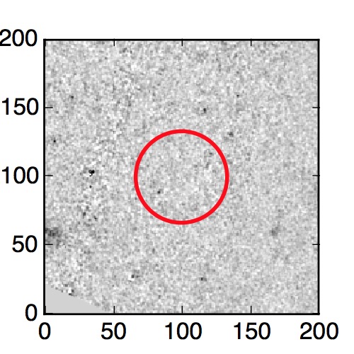 The red circle in the various panels is 1" in radius. The images are 6"x6".
