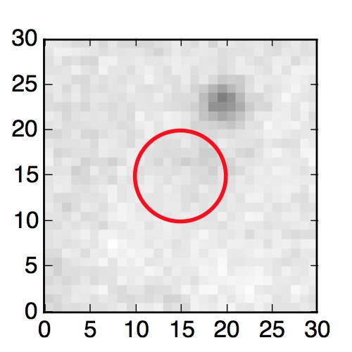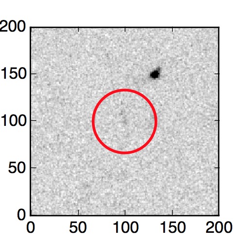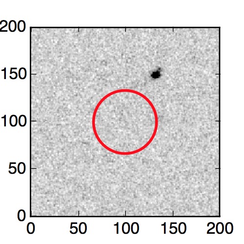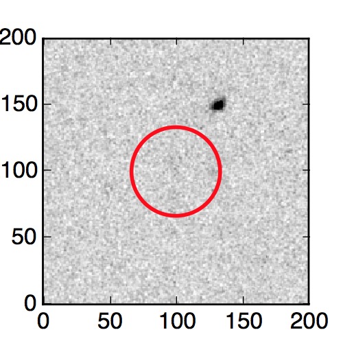The red circle in the various panels is 1" in radius. The images are 6"x6".