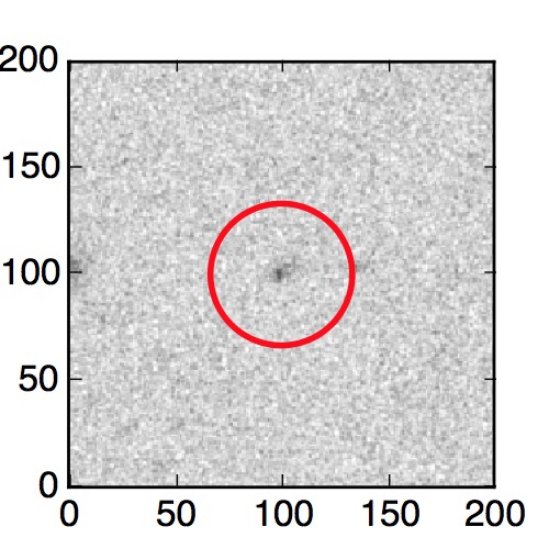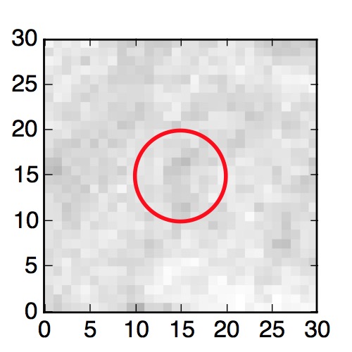 The red circle in the various panels is 1" in radius. The images are 6"x6".