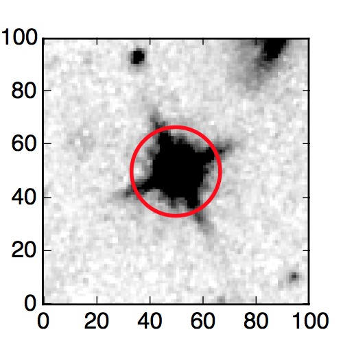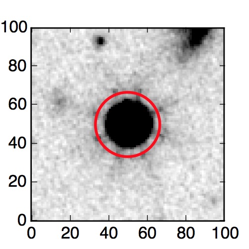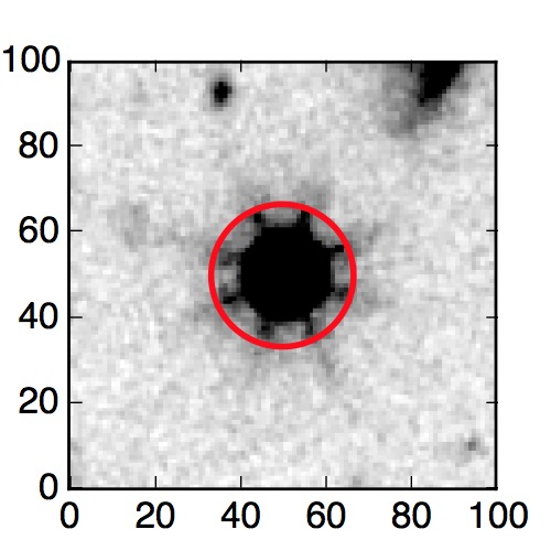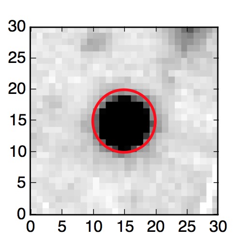 The red circle in the various panels is 1" in radius. The images are 6"x6".