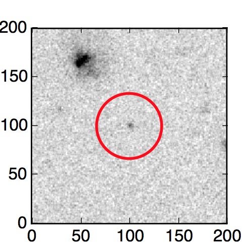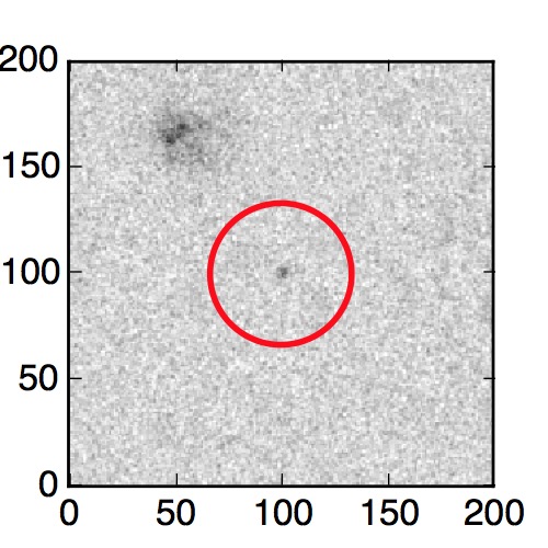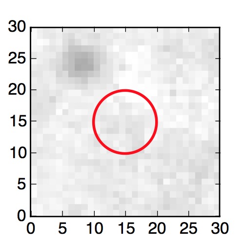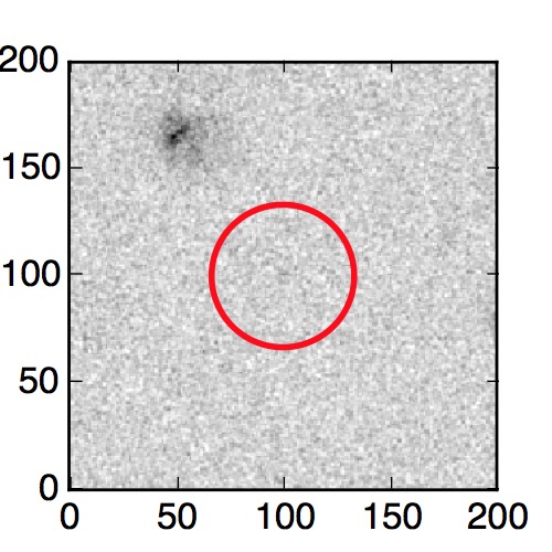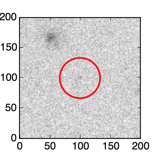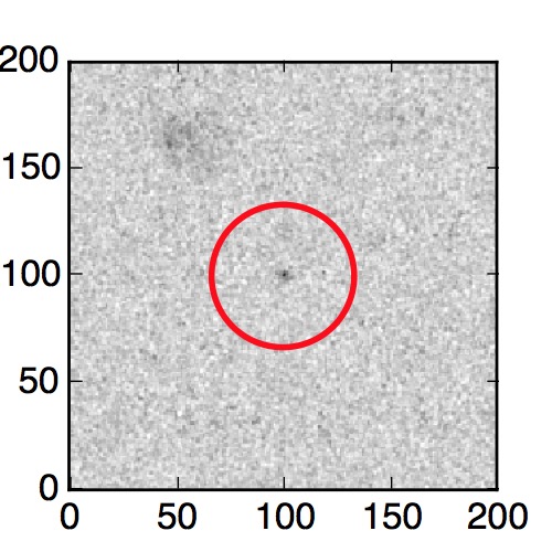 The red circle in the various panels is 1" in radius. The images are 6"x6".