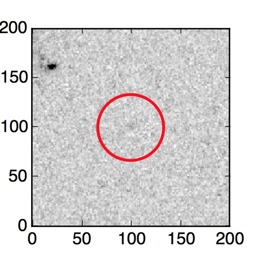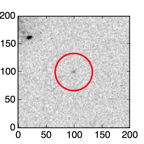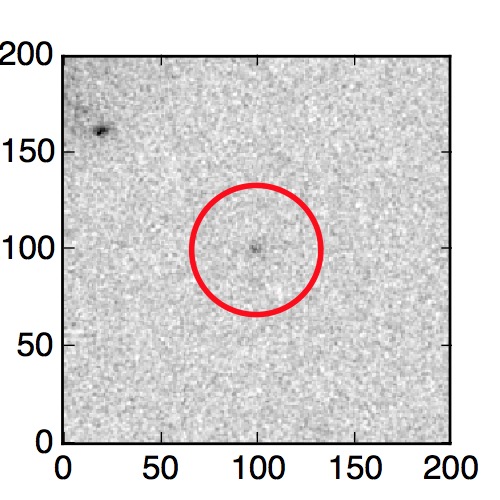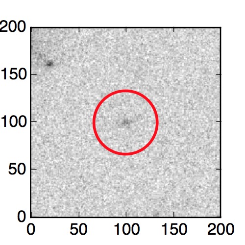 The red circle in the various panels is 1" in radius. The images are 6"x6".