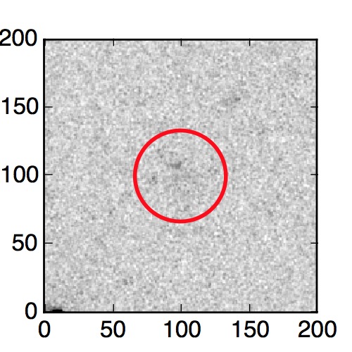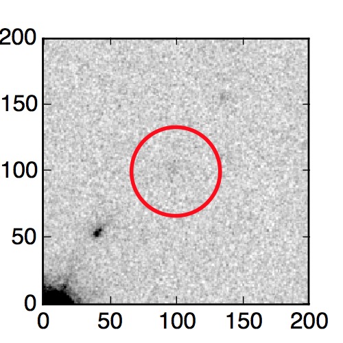 The red circle in the various panels is 1" in radius. The images are 6"x6".