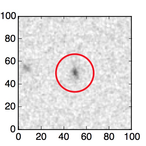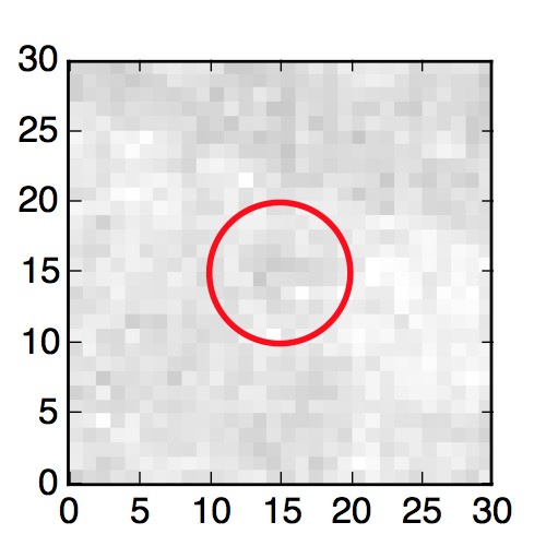 The red circle in the various panels is 1" in radius. The images are 6"x6".