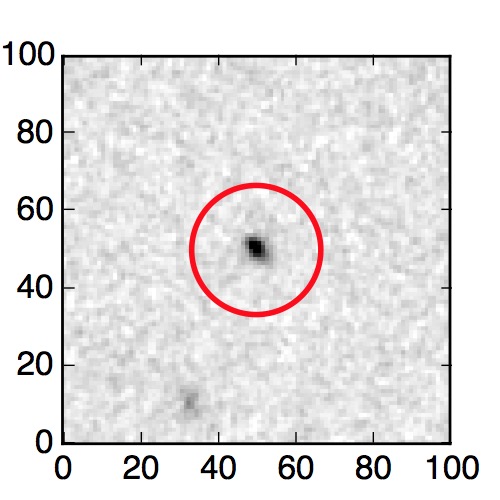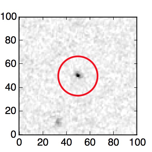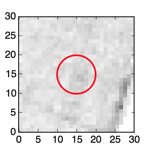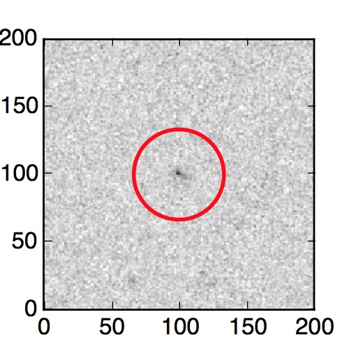 The red circle in the various panels is 1" in radius. The images are 6"x6".