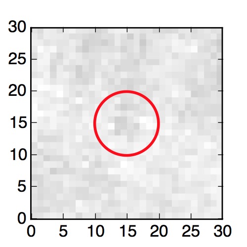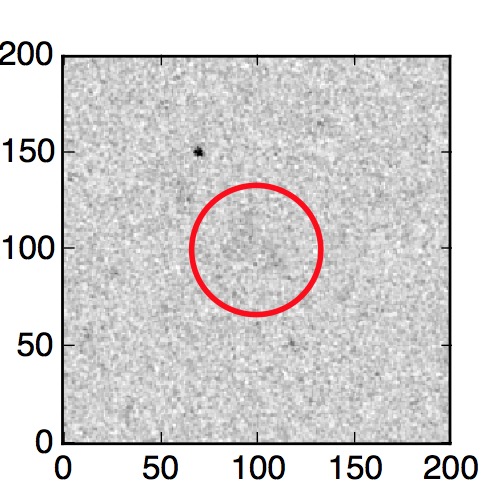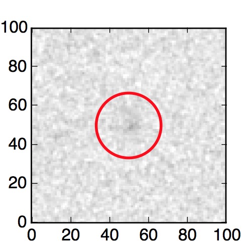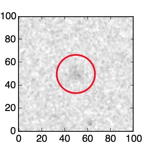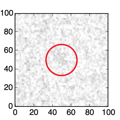 The red circle in the various panels is 1" in radius. The images are 6"x6".