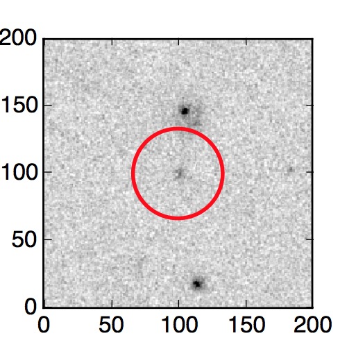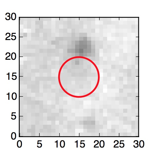 The red circle in the various panels is 1" in radius. The images are 6"x6".