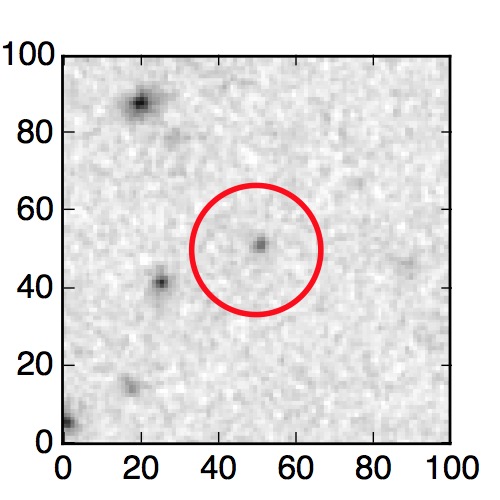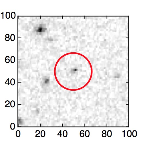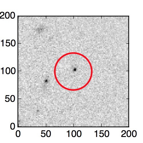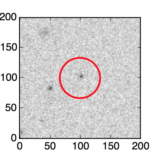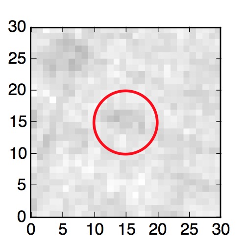 The red circle in the various panels is 1" in radius. The images are 6"x6".