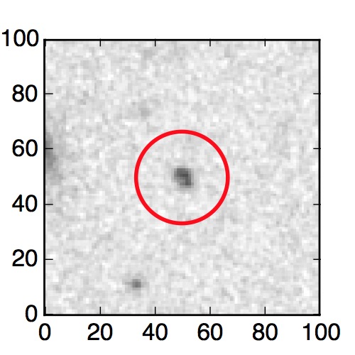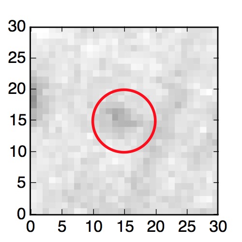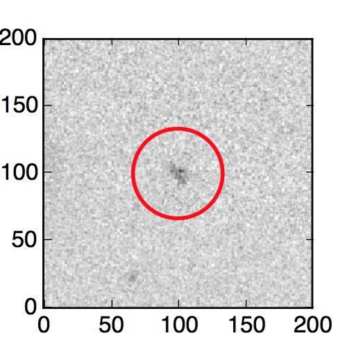 The red circle in the various panels is 1" in radius. The images are 6"x6".