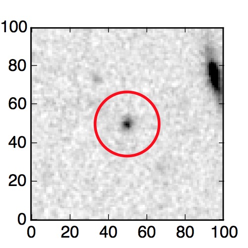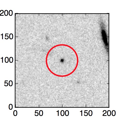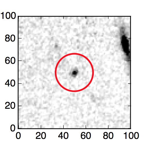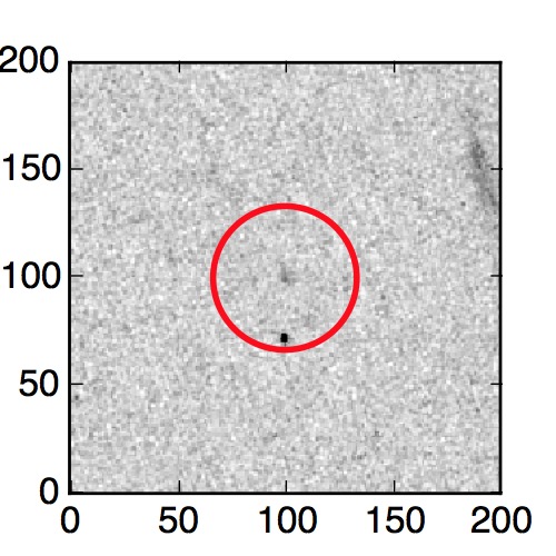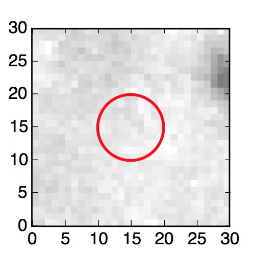 The red circle in the various panels is 1" in radius. The images are 6"x6".