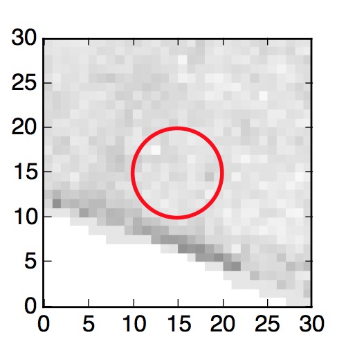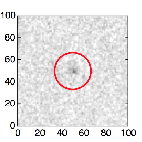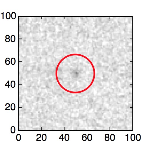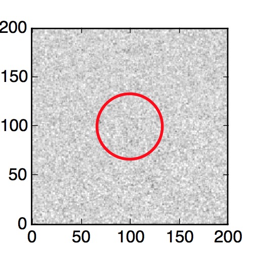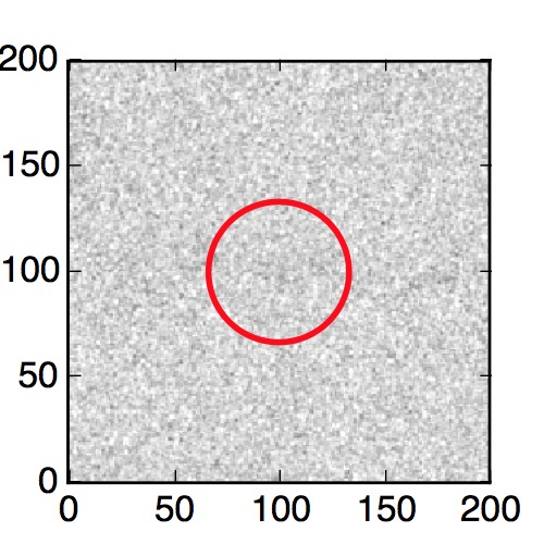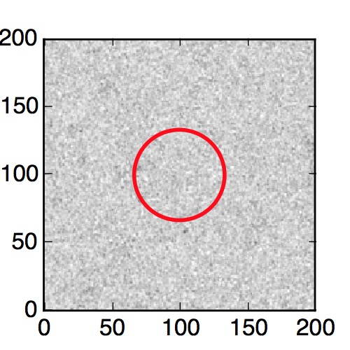 The red circle in the various panels is 1" in radius. The images are 6"x6".