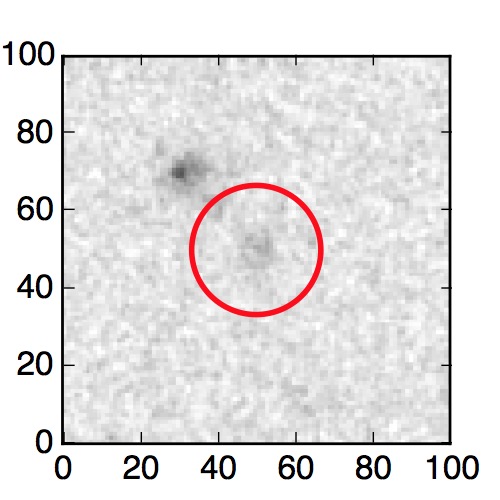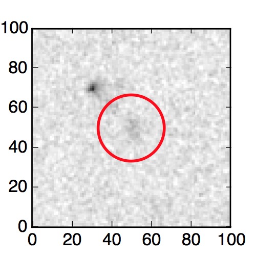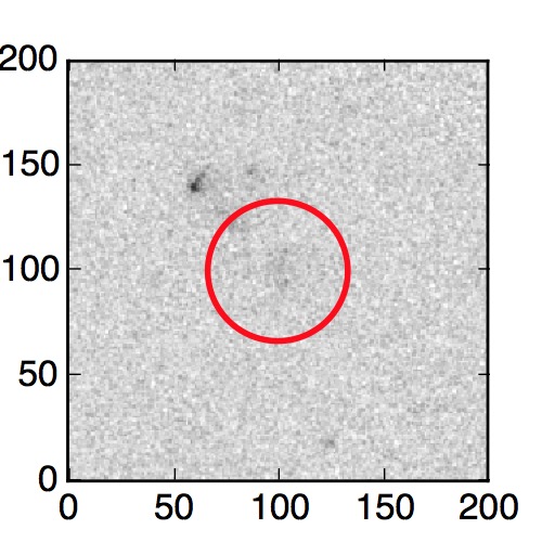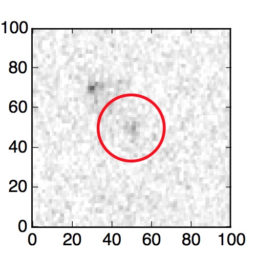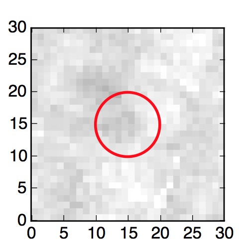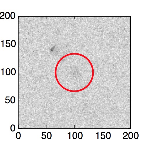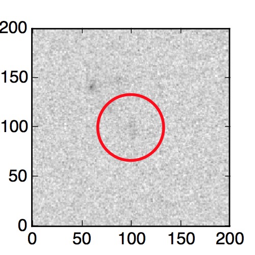 The red circle in the various panels is 1" in radius. The images are 6"x6".