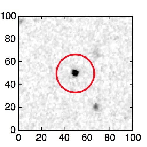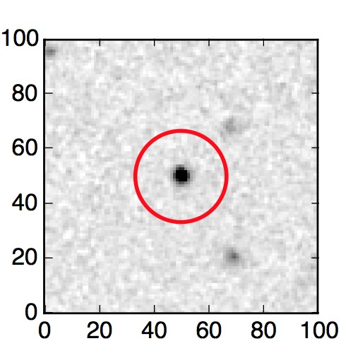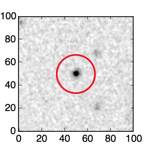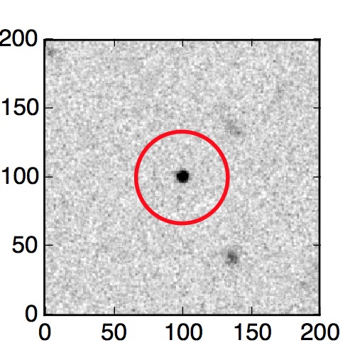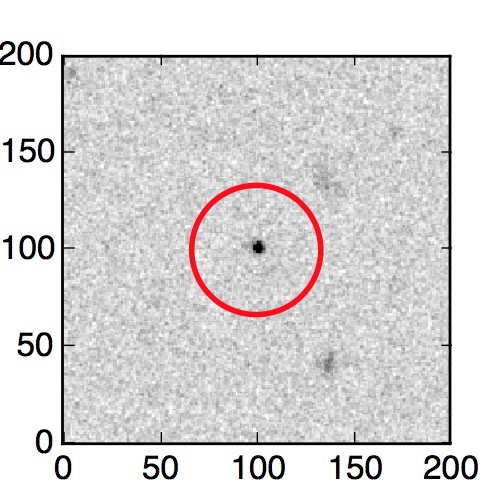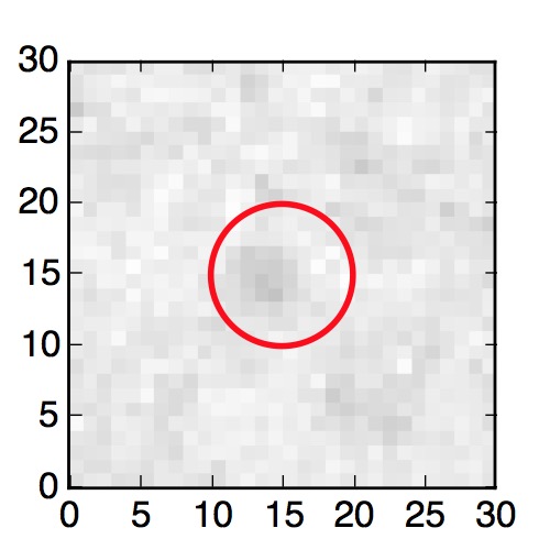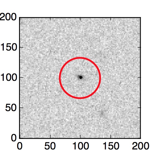 The red circle in the various panels is 1" in radius. The images are 6"x6".