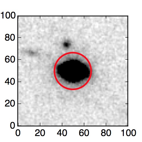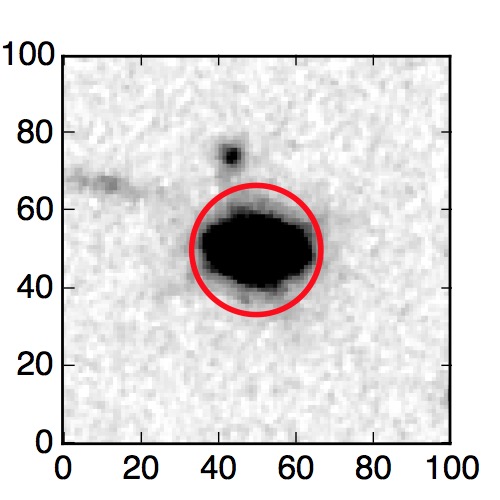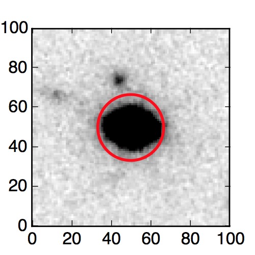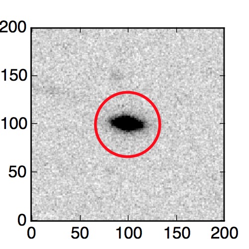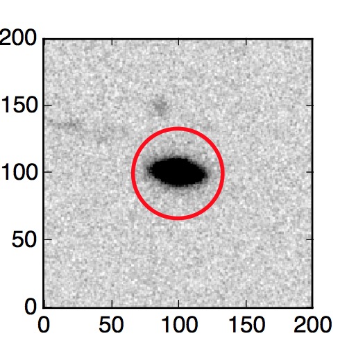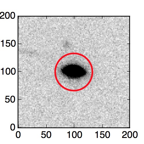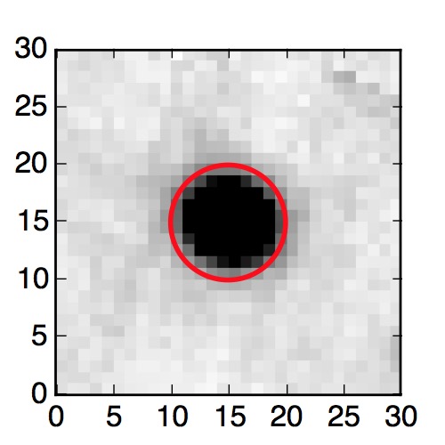 The red circle in the various panels is 1" in radius. The images are 6"x6".